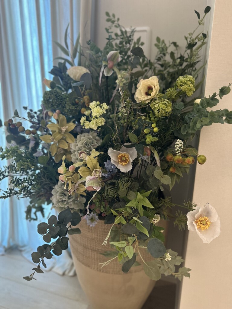 例えば秋は実物、冬は枝物、など季節ごとに旬のグリーンの入れ替えもさせていただきます。