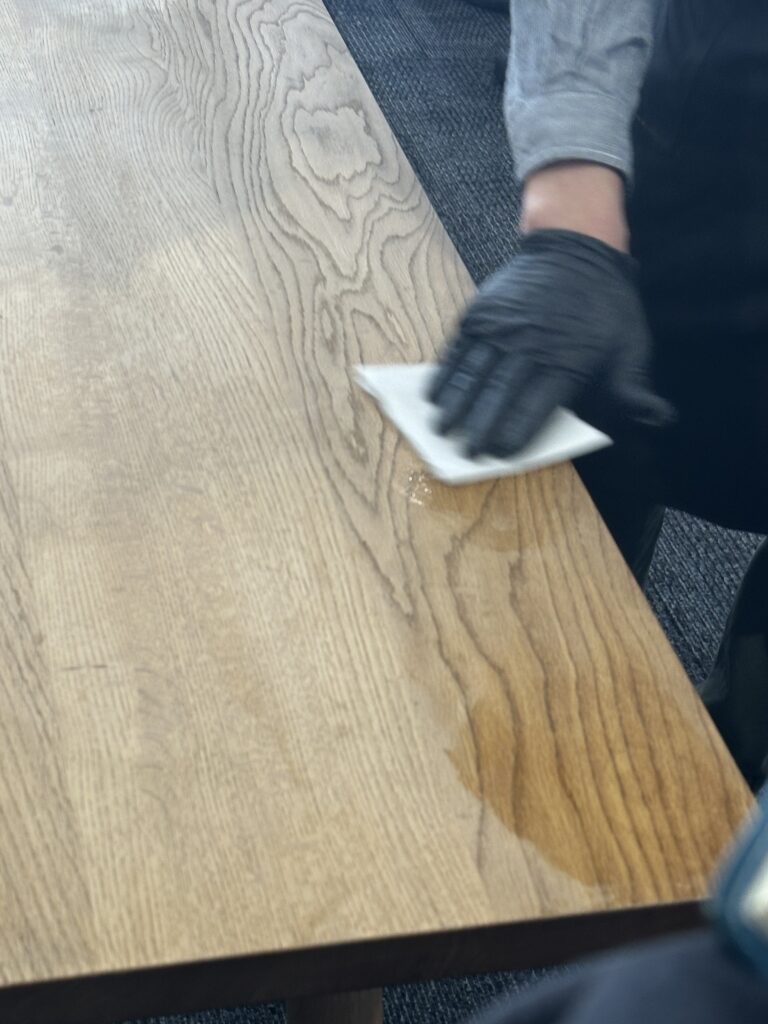 家具のメンテナンスワークショップの様子。オイル塗装とソープ塗装のメンテナンス方法を教えていただきました。