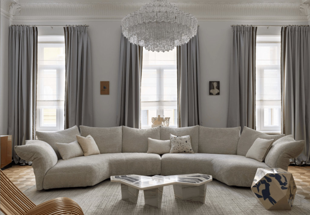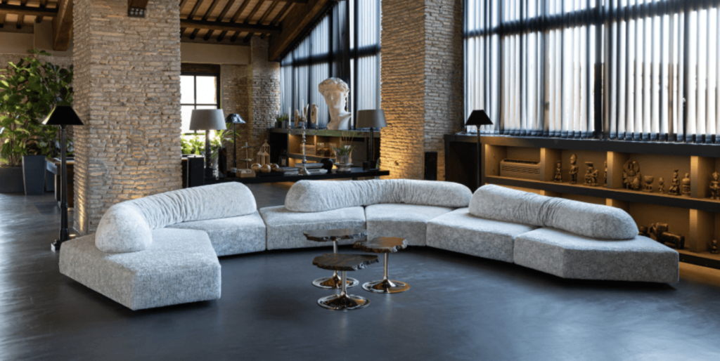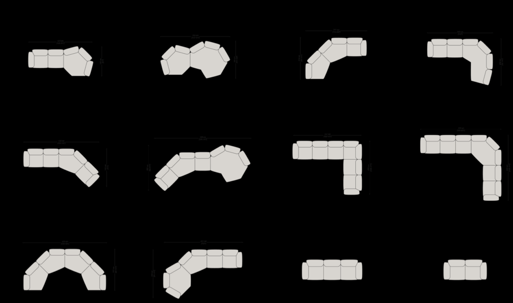 また、何より本当に様々な形のモジュールがあり組み合わせ方が何通りにもなるこというところがお勧めポイント。例えばお部屋のサイズに合わせて小さくも組めるし、家族構成に合わせて半円形に組んだりコーナー部分を奥行き深めのモジュールにすれば足を伸ばして寝転がることもできます。座り心地、機能性、デザイン性全てにおいてお客様にぜひお勧めしたいアイテムです(お値段も立派です。。)