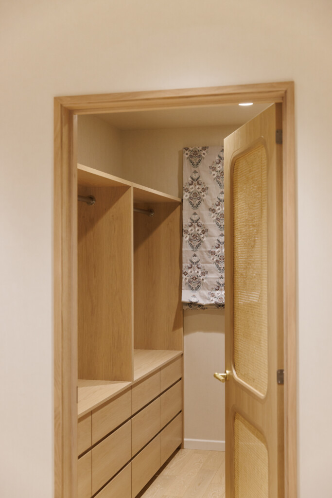 ラタンドアで通気性の良いウオークインクローゼット。